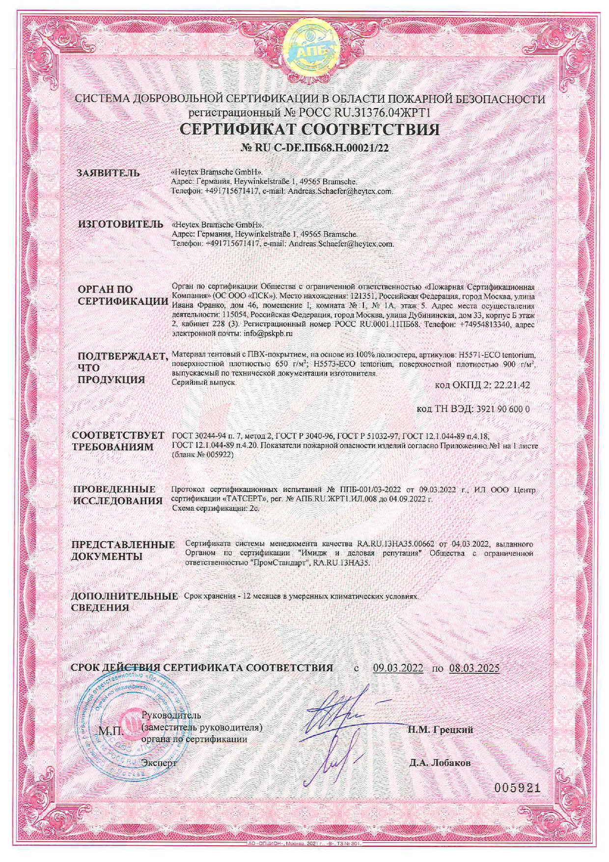 Сертификаты, лицензии